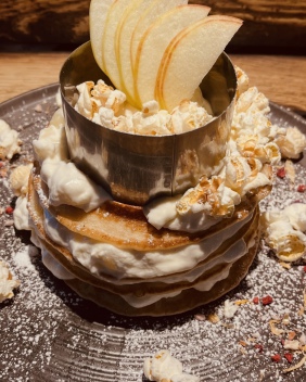 Getoppt mit warmer Karamellsoße, knackigem Popcorn und einem Hauch Puderzucker.