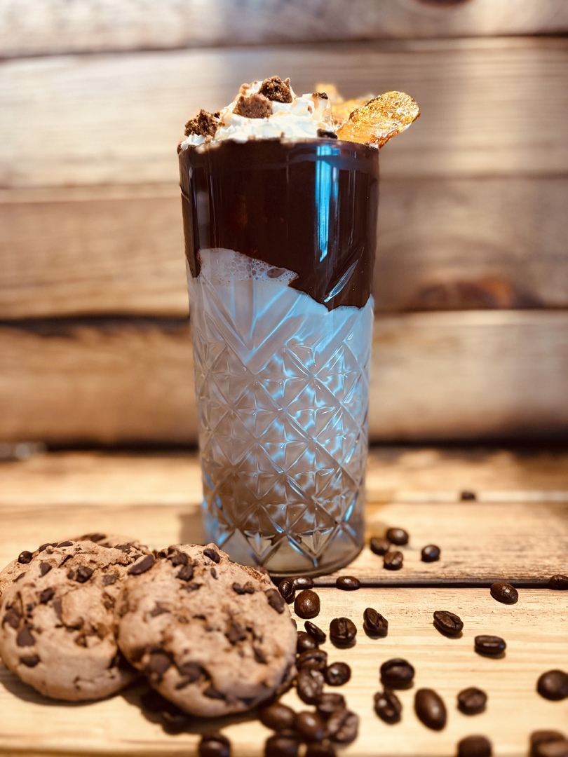 Cremige Baileys-Latte mit Nuss Nougat, Sahnehaube, Karamellsoße
